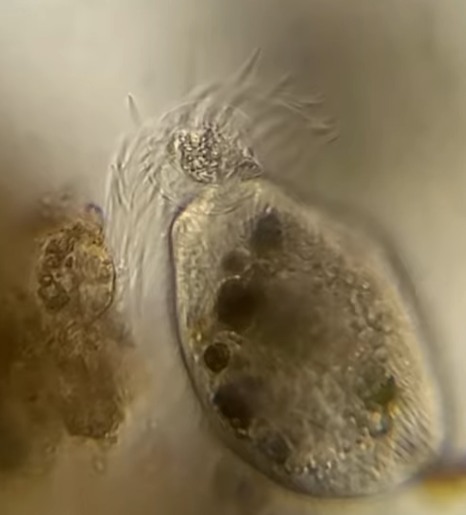 La fotografia che ho postato non è casuale: si tratta di un organismo unicellulare che si sta nutrendo di un altro organismo unicellulare. Nessuno gli attribuirebbe una coscienza, uno spirito o un fine. Sappiamo che agisce in base all’elaborazione sensoriale, legata alle molecole con cui entra in contatto. Mantiene l’entropia interna costante, attraverso il nutrimento che trasforma in azione liberando calore e scarti (aumentando l’entropia del sistema in cui vive).