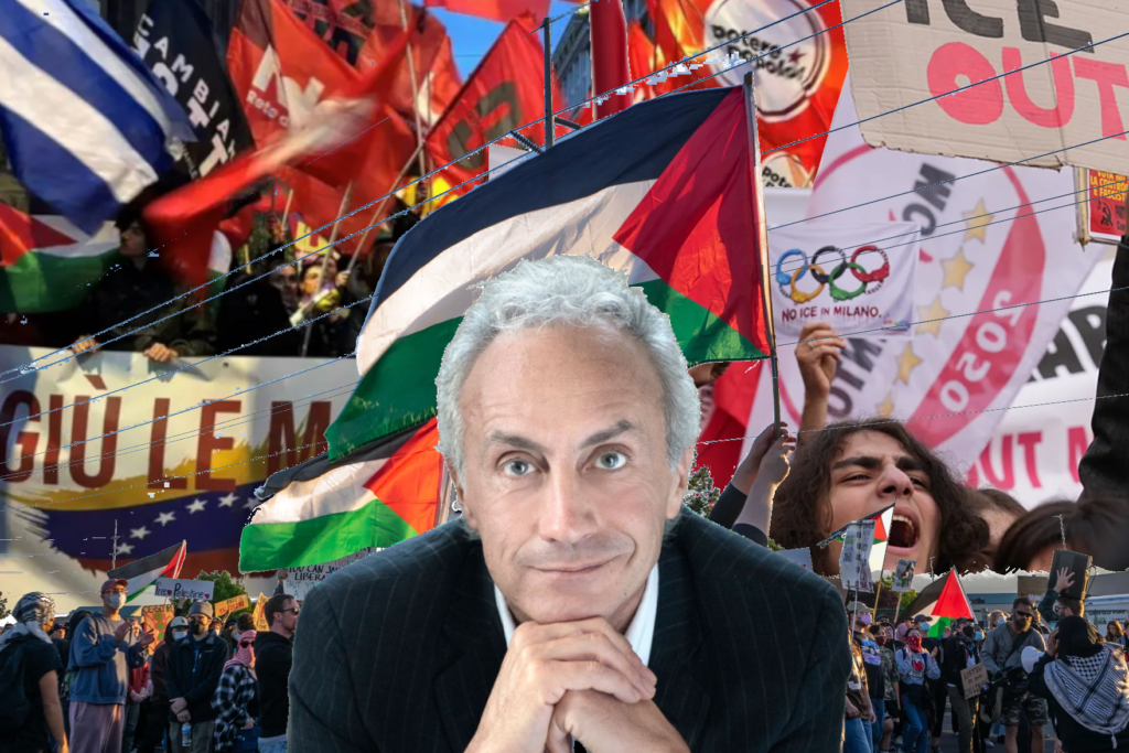 Nella composizione fotografica, in primo piano, il gran patron dell’indignazione in Italia.